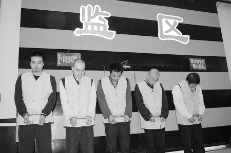 昨日,記者在未央?yún)^(qū)看守所見到了5名嫌犯。嫌犯王某對記者說,“對不起受害人。大家千萬不要像我一樣,要走正道賺錢!蹦壳,王某等5名嫌犯已被警方刑拘,而在逃的仝某警方正在追捕中。警方希望知情者積極提供破案線索。舉報(bào)電話:029—86713172。(文/圖 記者 張小乙 實(shí)習(xí)生 王婷 袁勝娟)