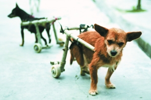救助中心的條件比較簡陋,一開始只有8名工人,但每一只被救回來的貓狗在這里都受到了最好的照顧。如今,雖然不少狗都落下了終生殘疾,但身體狀況和精神狀況都基本恢復(fù)正常。對于它們來說,還能拉著“輪椅”繼續(xù)生活下去本身已是不幸中的萬幸。