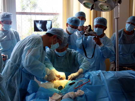 10月8日上午10時30分緣小被抬進手術室,專家們為緣小實施了手術。手術歷時近三個小時,由于受傷時間較長,斷骨端形成骨痂給手術帶來一定困難。在將斷裂的骨頭成功對接后,專家們又用目前最為堅固的鈦合金鋼板進行了固定。下午14點左右,緣小重新回到了自己養傷的單間。
