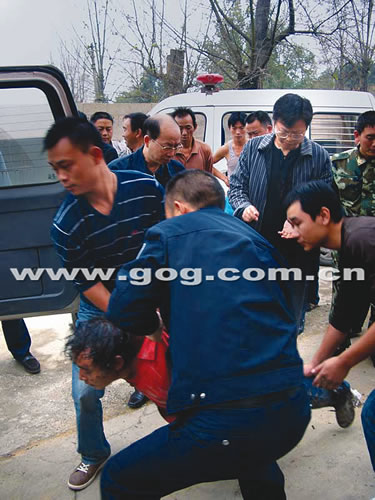 民警通過長達(dá)半小時的勸說無效后,強攻組在做好一切防備的情況下,強行將兇手用身體抵住的房門踢開沖進(jìn)作案現(xiàn)場。歹徒隨著被踢開房門的外力向屋內(nèi)被“彈出”約兩米,站在死者尸體旁邊。見到多名民警已強攻進(jìn)屋,兇手繼續(xù)負(fù)隅頑抗,民警與手持兇器的歹徒進(jìn)行殊死搏斗時,歹徒踩到死者的血跡摔倒在血泊中,幾名民警迅速將其壓住并奪下兇器將其生擒。