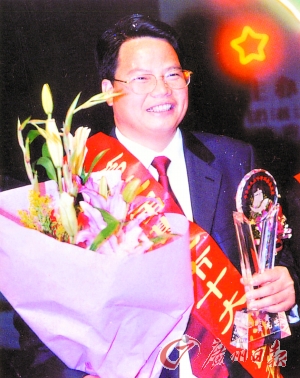 黃兆巒曾有多種榮譽加身,圖為其正在接受湛江市“十大杰出青年”頒獎。