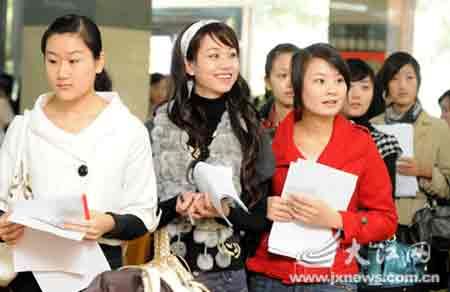 在南昌航空大學(xué)就讀的一位大四學(xué)生告訴記者,此次連自己共有6人來面試,但目前只有兩人進(jìn)入復(fù)試,其余4人就是卡在英語關(guān)和反應(yīng)能力的考驗上。記者在現(xiàn)場看到,進(jìn)入面試的應(yīng)聘美女在填寫個人簡歷時也必須用英文。