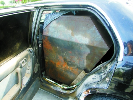 民警將兩人控制后查看轎車,一打開車門,一股刺鼻的柴油味撲鼻而來,車上到處都是油污,該車只有正副駕駛的座位,后排座位全被改裝成了一個長約2米,寬、高各有1米的大鐵箱,鐵箱子完全按照后排車廂的形狀制作,幾乎不留任何空間,嚴絲合縫地卡在后排。