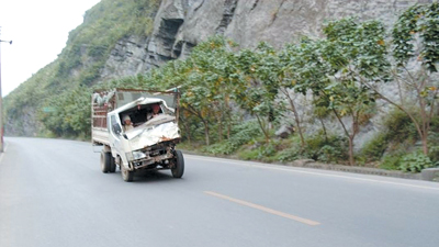 從來沒有看到過這么“牛”的駕駛員:國道319涪陵至武隆段,一輛剛剛被撞成“歪嘴”的貨車,以每小時(shí)四十至五十公里的速度行駛了20多公里!昨天,網(wǎng)友將最強(qiáng)悍司機(jī)開“腦殘車”的照片發(fā)到網(wǎng)上。