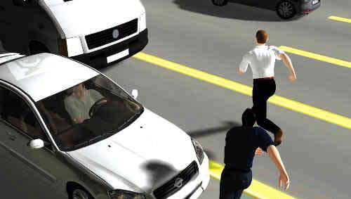 據(jù)轎車司機(jī)馮先生稱,當(dāng)時(shí)他正行駛在靠中間綠化帶的小客車車道上。“當(dāng)時(shí)車輛很多,我開得并不快。突然,車輛左前方跑過一名拿著警棍的男子,我緊急剎車還是把他撞倒了,隨后一旁車道的一輛中型貨車剎車不及把他壓在車輪下。”“看他像是在追趕什么人,而且跑得很快,甩出來的警棍把我的車前窗擋風(fēng)玻璃都撞裂了。”馮先生說。