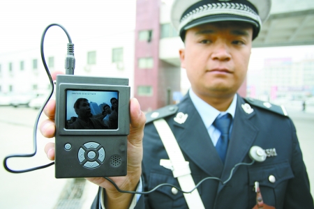 這部看上去類似MP4的“攝像頭”,學名叫“音像記錄儀”,帶有一個高清的顯示屏,可以實現(xiàn)同步錄像、錄音、拍照和PMP(媒體播放器)擴展功能,不受白天、夜晚限制,能夠連續(xù)錄像8小時,存儲照片2萬張。每部在千元以上,專門用來現(xiàn)場取證。