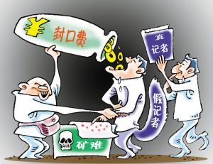 假記者之所以大行其道,屢屢敲詐成功,甚至能堂而皇之地領取“封口費”,是因為有隙可乘,比如礦難發生后的“瞞報”,就給了他們可乘之機。所以,要針對這次礦難打假,要打的不光是假記者。(莊嚴)