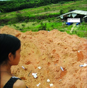 另外一件讓古女士感到懷疑的事情是,10月29日下午1時許,古女士發現婷婷失蹤,只有她的一雙鞋子被整整齊齊放在工地泥頭車傾倒的黃土邊。她心里涌起可怕的念頭:女兒被埋在土里了?她看到不遠處有一輛泥頭車停在那里。于是她上前詢問司機,有沒有看到她女兒,司機說沒有。古女士再次問當天有沒有推土機在這片地方碾壓過?司機回答沒有。