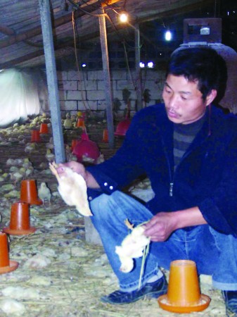 謝文明介紹說,10月27日,他從當地一信譽較好的廠家進了7000只優質雞苗,這批雞苗價值2.1萬元。為了這批雞苗長成時能掙個好價錢,他還一次性買了3000多元的飼料和用于雞棚保溫的2000多元的煤炭。可現在7000只雞僅僅剩了不到300只,直接經濟損失近3萬元。看著這些死去的雛雞,今年38歲的謝文明心疼得直掉眼淚,妻子更是連飯也吃不下去。