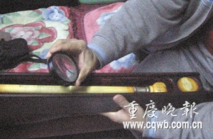 家住渝中區(qū)七星崗新德村223號的王川正,是市書法家協(xié)會會員和市工藝美術家協(xié)會會員,退休老師。“這是一根祖?zhèn)鞯镍f片煙槍,乳黃色的象牙材質,長41厘米,比拇指略粗(如圖)!蓖醮ㄕf,父親把煙槍傳給他時,重復祖父訓誡:無論多大家業(yè),千萬莫吸鴉片。為增加象牙煙槍的收藏價值,半年前,王川正決定在煙槍上刻出鴉片戰(zhàn)爭的歷史。“我查閱大量史料,湊齊13篇林則徐嚴禁鴉片奏案、虎門銷煙圖等,用20倍放大鏡和比繡花針小10倍的刻刀,每天堅持刻畫,如今終于完成!蓖醮ㄕf,近兩萬字的禁煙史已刻上煙槍上長12厘米長、寬1.5厘米的面積。