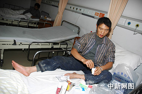 在浙江蕭山醫院,幸存者四川小伙哭著說,“我這條命是撿回來的。”他說,事故發生后,他是在第一時間被送到了醫院。目前,他的傷口已經被包扎完畢。醫務人員對他照顧無微不至,不僅給他們買了盒飯,還給家人打電話報了平安。