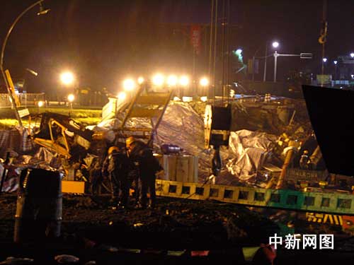 11月17日晚上7點左右,天空下起了小雨,指揮中心迅速調來遮雨布為救援現場對儀器及剛填筑好的墻體進行保護工作。據工作人員介紹,坍塌基坑北側是為搶險工作而填筑的墻體,沒有任何防水措施,因此如不做保護,將有可能造成新的坍塌事件。(完)