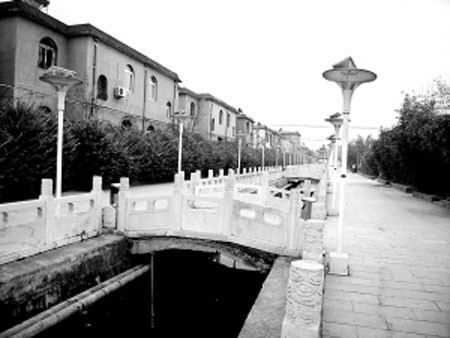 在一片居民區(qū)內(nèi)記者看到,小別墅前建有多道白色的拱橋,橋下水池里喂養(yǎng)著成群的金魚,頗有“金水橋”的意味。當(dāng)?shù)貛酌麐D女倚在自家門口,抱著孩子曬太陽。足不出戶,便仿若呆在金水橋畔,看上去十分愜意。