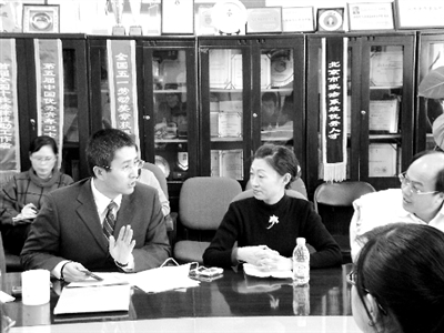 孟超的家長(右一)向北京市青少年法律援助與研究中心求助。