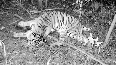 9月8日上午,黑龍江省東方紅林業(yè)局居民到東林林場撿山核桃,在位于林場1林班的地方發(fā)現(xiàn)一具東北虎尸體。接到報案,林區(qū)公安局立即趕赴現(xiàn)場。經(jīng)勘查發(fā)現(xiàn),被害的老虎是一只野生成年雌虎,身長1.55米,加上尾部長2.38米,肩高0.54米,體重97公斤。在它前進(jìn)的方向只發(fā)現(xiàn)了野豬的足跡,說明它在死前仍然在追野豬。地上的虎毛和虎爪的痕跡清晰可見,顯然它在死前經(jīng)過一陣掙扎。從勒在虎頸部的鋼絲套可以斷定,這個鋼絲套就是導(dǎo)致其死亡的直接原因。經(jīng)鑒定,死去的老虎屬東北虎亞種,系鋼絲套勒頸部窒息死亡。