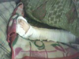 劉先生說,他看到X光片顯示,朱全超的腳踝已骨折。目前村民自發(fā)組織了1000多元的捐款,在勉強(qiáng)維持著朱全超的用藥。秋渠鄉(xiāng)衛(wèi)生院的醫(yī)生說,因?yàn)閭诟腥据^嚴(yán)重,如不能得到更好的治療,朱全超的一只腳可能要面臨截肢。熱心的劉先生用手機(jī)將現(xiàn)場的情況拍照發(fā)給記者,呼吁相關(guān)人士能關(guān)注這個(gè)不幸的家庭,為他們送上力所能及的幫助。