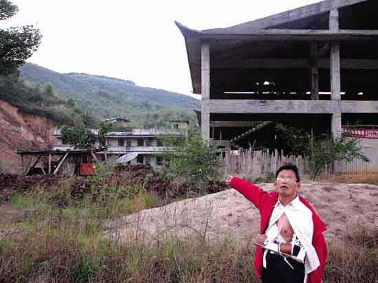 征地項目如期開建,不服氣的丘家厲一直上告。“我終于在2004年11月1日盼來了區(qū)國土局的停工協(xié)議書,可是工程卻依然照常開工,”丘家厲告訴記者,“直到我找到省國土廳,工程才于2005年9月7日正式停工,可是直到現(xiàn)在,公墓建筑依然沒有拆除,土地也沒有歸還農(nóng)民。”