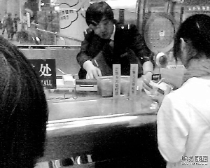 在該帖子中,網(wǎng)友monitorhand貼出了他所拍的照片,一共5張。從照片中看到,在售票窗口內(nèi),一名身穿地鐵工作制服男職工正在為市民辦理業(yè)務(wù)。記者看到,該名員工的右腳擺得很高,右手手臂就墊在右腳的膝蓋上。另外,從照片中可以看到,該名男職工至少在為3名乘客服務(wù)的過(guò)程中保持這種姿勢(shì)。