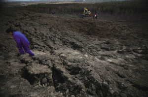 昨天,現場還圍著警戒線,地上露出一個深約4米、直徑9米左右的大坑,一旁散落的泥土,被火燒烤后呈龜裂狀,讓人觸目驚心。