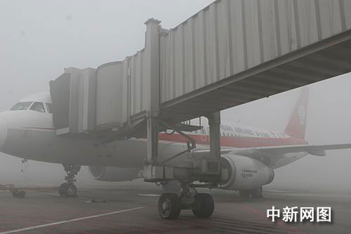 濃霧16日再鎖成都機(jī)場,能見度極低,109個(gè)航班被延誤。 作 者:呂俊明