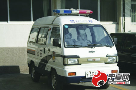 城管執法人員使用的警車停放在銀川市城管局辦公樓下。