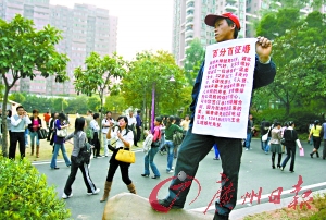 一名36歲男子打出“百分百征婚”廣告。莊小龍攝(圖片來源:廣州日報)