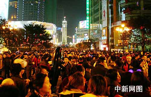 據(jù)稱,從下午4時(shí)起,重慶交通部門就派出大量交警駐守通向解放碑的主要路口疏導(dǎo)交通;打扮成圣誕老人的商販們?cè)缭缯紦?jù)通往解放碑廣場(chǎng)的各條主干道,吆喝著售賣充氣棒、圣誕帽、熒光棒等圣誕狂歡道具。