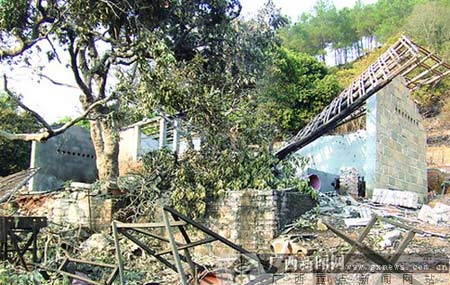 發生爆炸的私炮點位于譚禮村新寧隊后面的一個山坡上,民房離那里最近的只有約20米。在五六間磚木結構的房子旁,一塊約100平方米的地面已漆黑一片,私炮點四周用水泥砌成的矮墻已全部崩塌,現場一片狼藉。