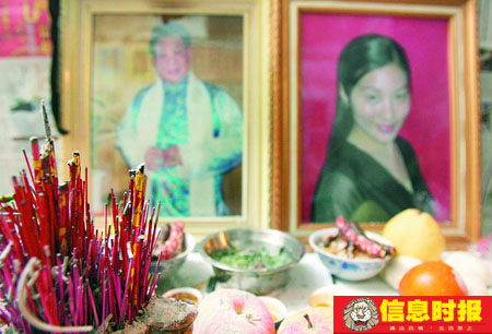 “這是阿瑩割脈自殺的刀,這是阿瑩自殺時(shí)的衣物,這是她自己擺設(shè)的靈堂,這是阿瑩和峰哥照的合照......”昨日晚上,經(jīng)過(guò)親友允許,記者第一次走進(jìn)了阿瑩自殺所在地——沙涌二巷峰哥家中,20平米左右的屋里貼滿了報(bào)紙和兩人的劇照,整個(gè)氣氛讓人窒息。