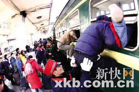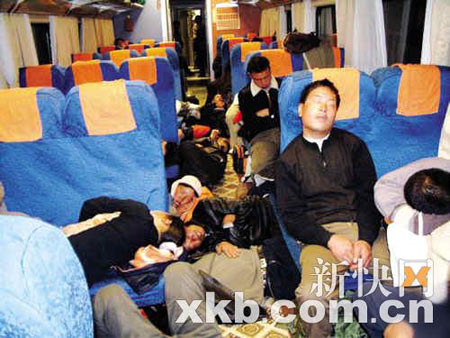 這位網(wǎng)友“南慕整容”在天涯社區(qū)的這篇題為《說說你坐春運(yùn)火車的事》的帖子中,講述了坐火車的感受與故事。他認(rèn)為坐火車的一大特點(diǎn)是臟,尤其是春運(yùn)。他描述道:“平日里我們用人均面積來算人居環(huán)境,到了火車上得換成人均體積,擠過火車的人都有同感,座椅底下是人,行李架上是人,廁所能擠進(jìn)去六七個人。我坐臥過的就有地板、座椅頂端、洗手臺子、車廂接口處的垃圾袋子、行李架,無所不用其極。偶爾也有幸福的時候,有次去廣州,一個十七八歲的俊俏大姑娘實(shí)在熬不住,趴在我大腿上睡了一晚,來接站的哥們聞之艷羨不已,他不知道,我的腿都給壓腫了!