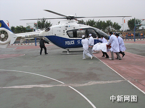 中新網韶關一月二十二日電(馮昶 李凌 譚富堂)一月二十二日上午,廣東韶關乳源體育館門前呈現緊張繁忙的景象,只見積滿冰雪的公路上,一輛輛鏟雪車開道,后面緊跟著撒鹽融冰……,直升飛機在上空盤旋,準備救援傷病人員……