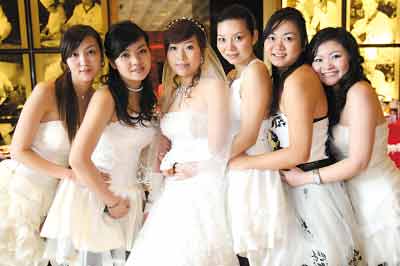 舉行婚禮的新人名叫楊利和田應(yīng)華。新娘楊利告訴記者,她與5位伴娘都是從小玩到大的好姐妹。小時(shí)候,6個(gè)姐妹一起上學(xué)放學(xué),一起看書(shū)溫習(xí),一起頑皮。長(zhǎng)大后,6個(gè)姐妹也常常聚在一起談心,一起幻想著自己心中的“白馬王子”。