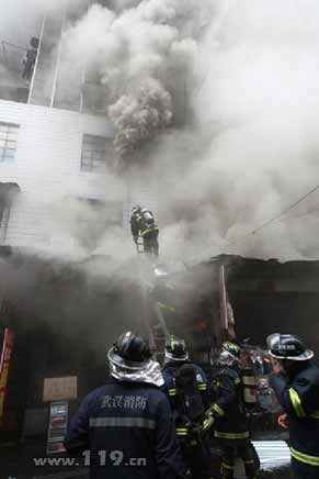 中國消防在線的消息稱,接警后,湖北省、武漢市公安、消防官兵800余人立即趕到現(xiàn)場,全力撲救火災(zāi),疏散周邊群眾。消防官兵共出動(dòng)21個(gè)中隊(duì)、消防車79臺(tái)、500余名消防官兵。截至下午2時(shí)止,消防官兵、公安民警已搶救出被困人員10人,疏散群眾300余名。