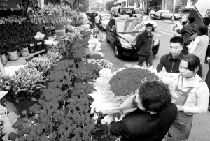 今天就是情人節了,記者昨日走訪解放碑魯祖廟花市發現,今年價格最高的當屬進口玫瑰,一枝售價高達99元。