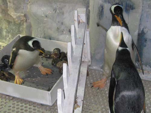 “面壁思過”了幾天后,它們重回故園。考慮到它們想當父母的心情,趙毅給了它們一個“安慰獎”———一枚假企鵝蛋。結果,它們馬上安靜下來,趴在早已用鵝卵石搭建好的“產房”一心一意孵起蛋來。趙毅發現,它們的孵化本領非常高,甚至比已經產蛋的企鵝媽媽更加熟練。