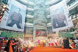 “海報上的人就是今天的壽星!爆F場賓客告訴記者,劉梁資產過億,作為回禮,給每位來賓發了一個精致的水晶煙灰缸,“這筆開銷就上10萬元。算上酒水,每桌酒席要3000元以上!