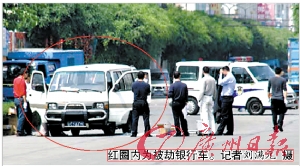 隨后,面包車上下來兩名男子,他們立即向警方報警。隨后大批民警及治安隊員趕到事發現場進行調查取證。