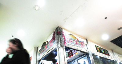 昨日中午,記者在現場發現,其主要通道和許多門市的墻面上開始清晰地出現大小不一的裂縫。“感覺像每天都在經歷地震。”大坪金象世家地下商場C區105號商戶趙庭明指著頭頂附近的一條裂縫說,前天上午,巨響突然傳來,一位恰巧經過的老太以為發生地震嚇得當即蹲倒在地。