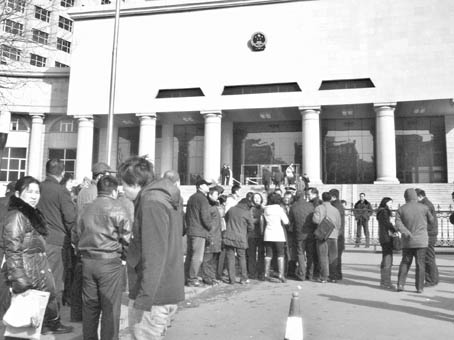 今天(24日),哈爾濱市中級人民法院不同以往。南、西、北3個門均戒備森嚴。南門人頭攢動,手拿旁聽證的人們先檢票通過院門,再經(jīng)安檢進樓門,再經(jīng)驗票進入法庭。西門人行稀少,人大代表們不經(jīng)安檢進入法庭。北門3人通行,8時50分,齊新、劉力男、楊森3名被告人從這里被帶入法庭。