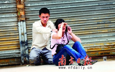 鄺女士不停哭泣,偶爾舉起手機打電話,她的脖子下有一把30厘米長的刀,她身后的重慶男子張×述不停喊著:“別逼我!”……昨日上午10時許,鄺女士乘坐公交車至三元里古廟站下車,正沿著廣園中路走,兩名男子突然出現在她面前,其中一名用水果刀抵著她的脖子。這對來自重慶開縣的兄弟張×述和張×均聲稱要錢救家中老母親。警方與之僵持了90分鐘,終于將其制服,鄺女士獲救。