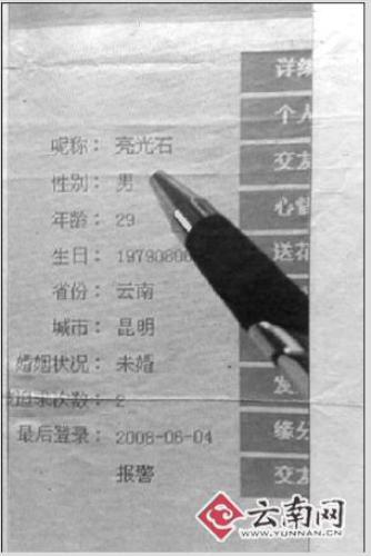 去年3月,網名為“迷惑夢中人”的小麗(化名)閑著無事,便上云南信息港的交友網上玩耍,當看見網名叫“亮光石”的征婚廣告:“29歲,無不良嗜好,采礦業(yè)執(zhí)行官,月收入兩萬元。誠征20至28歲的單身女孩為終身伴侶,學歷高中即可”時,小麗記下了他的聯系方式,雙方還互相留下QQ號碼。