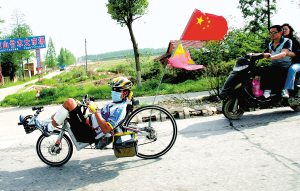 由于不好打擾騎車人的“騎興”,記者只能在與其短暫并行時了解到,他來自北京,準備就這樣一直騎到深圳。問起他在武漢境內的騎行的感覺,他高高豎起了大拇指。記者與他分手繼續做了相關采訪,才知道這位北京哥們兒可不是什么“怪物人”,他的座駕的專業名稱叫“躺車”,在國外已經風靡了近一個世紀,擁有了一大批愛好者。“躺車”發力依靠的是腳力和腰力,比一般的自行車更省力、更舒服。一輛高質量的“躺車”至少也要1200美元。如今國內各地也開始出現不少“躺車”發燒友,他們大多自己DIY,還成立了聯誼會,開展專業比賽呢。(記者張寧)
