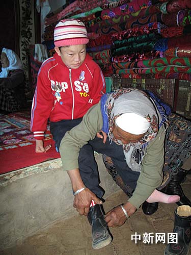 如今,20歲的麥爾孜依仍然不會說話,走起路來搖搖晃晃,除了吃飯以外,生活完全不能自理,但能聽懂簡單的哈薩克語。記者在采訪中發(fā)現(xiàn),媽媽比依臺坎始終牽著麥爾孜依的手,時不時的為麥爾孜依擦擦鼻涕,整理帽子。麥爾孜依則時不時的對父母經(jīng)常報以燦爛而羞澀的笑容。