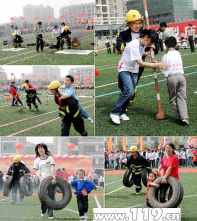 當天的競技比賽活動共設置穿戰斗服、滾氣球(模擬撲滅身上著火)、三組輪胎障礙(模擬搶救物資)、油鍋滅火、消防常識問答、沖出火場6個環節,要求參賽成員以最短時間,依次完成6個環節體驗。體驗項目先由消防戰士現場演示,隨后各幸運家庭分組進入賽道開始比賽。比賽分兩輪進行,通過幾輪PK,每個市州各產生一名優勝隊伍,隨后抽簽與明星消防隊員組成“明星體驗組”進行競技,比賽期間,明星主持人還通過與現場觀眾有獎競答的互動引起了參與群眾的濃厚興趣,將活動引入高潮。