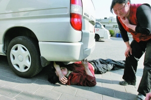 “我的鼻子、手、肩部都被他們打傷了。”大屯醫院內,胡先生躺在一輛面包車底下要求轉院治療,其鼻子和手及兩肩膀處均有傷痕。他說,他與舅舅在與城管隊員搶奪三輪車過程中,被城管隊員連人帶車強行架上執法車輛,其間他面部、肩膀等部位受傷。
