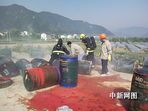 中新網臺州4月28日電(記者 江耘 通訊員 陳瑛子) 4月28日一大早,浙江臺州三門縣環保局便接到群眾舉報,在該縣海游鎮潺岙村附近的公路上發現大量塑料桶包裝的不明液體,十分刺鼻,疑似有人非法轉移、傾倒化工廢液。