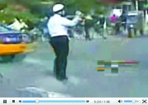 視頻于3天前出現(xiàn)在優(yōu)酷網(wǎng)上。打開視頻,戴白頭盔、穿藍制服的男子在繁忙的路口指揮交通。
