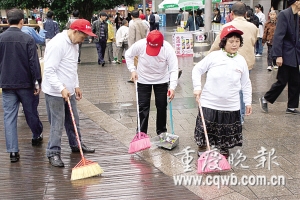 在“五一”期間,我市500多名“愛心亭殘疾人幫扶培訓(xùn)中心”的學(xué)員,分成30個(gè)隊(duì)伍,在渝中區(qū)、江北區(qū)、渝北區(qū)、南岸區(qū)、九龍坡區(qū)、沙坪壩區(qū)等主城街道,開展“我勞動(dòng),我快樂”的活動(dòng),上街頭義務(wù)清掃。(記者 李珩 攝影報(bào)道)