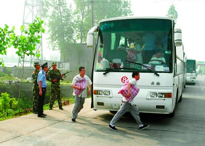 17時30分,租用的客車到達(dá)現(xiàn)場。然而,囚車緊貼護(hù)坡,車門被卡住無法打開。現(xiàn)場指揮當(dāng)即決定,由押解人員組織囚犯逐個從破損的囚車車窗爬出,分批集合統(tǒng)一上車。囚犯們沿著隔離出來的路線有序下車、上車。半小時后,囚犯轉(zhuǎn)車完畢。