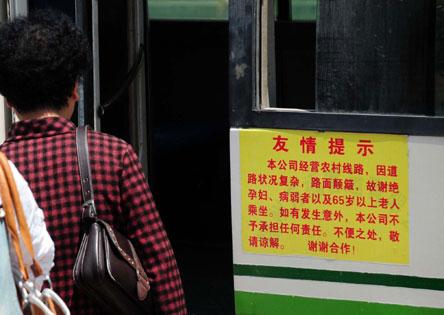 在新店至北峰客運(yùn)專(zhuān)線班車(chē)上,記者看到,車(chē)門(mén)上或者車(chē)內(nèi)并未張貼類(lèi)似的提示或免責(zé)條款,沿途也不時(shí)有老人乘車(chē)。